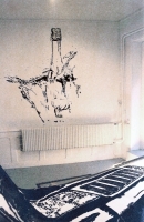 Vitrine du CAP, Fribourg, 2003 painting, neon tubes, cut out tape on wall, assemblages, various materials.